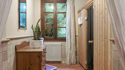 Swimming Pool:The large swimming pool occupies one of the most scenic spots of the entire property and is surrounded by a large stone-paved solarium with sunbeds and umbrellas. A little further on, immersed in the dense vegetation, a wooden gazebo with table and chairs offers one of the most attractive viewpoints. Rectangular and measuring about 15 x 7 m, with a maximum depth of about 2.70 m, the pool is lined in blue mosaic and is equipped with salt purification, guaranteeing a pleasant experience while the lighting, both internal and external, allows the pool to be enjoyed at night as well. The pool is available from the last Saturday in April until the first Saturday in October.