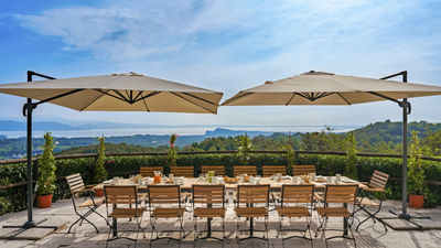 Set on a hilltop with breathtaking views of Lake Garda, Tenuta Navelli is a tranquil retreat blending natural beauty with traditional charm and modern comforts. Surrounded by woods, olive groves, and vineyards, the villa offers an idyllic escape with its spacious interiors, lush gardens, and exclusive outdoor amenities. Relax by the panoramic pool, enjoy alfresco meals under the covered patio, or play tennis on the private court. Its strategic location near Salò makes it a perfect base for exploring the wonders of Lake Garda. PLEASE NOTE: A caretaker lives in a property adjacent to the main building, with independent access. He discreetly handles the upkeep of the villa, park and pool. Guests enjoy maximum privacy and exclusive use of all dedicated areas.