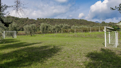 The tennis court is about 300 metres from the estate, reached by a pleasant walk through the olive grove and the vineyards. Made of red synthetic material, it is of regulation size. Nearby, a multi-purpose court with two goalposts can be converted into a five-a-side football pitch. Also available is a small clubhouse, with rustic and functional furnishings, which can be used as a changing room and is equipped with a bathroom with shower.