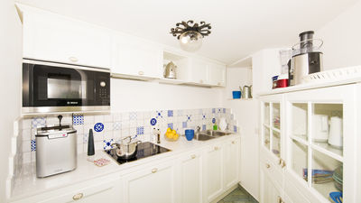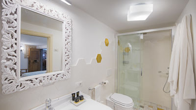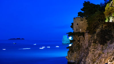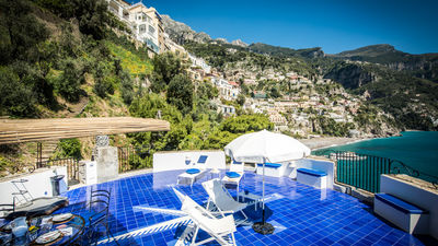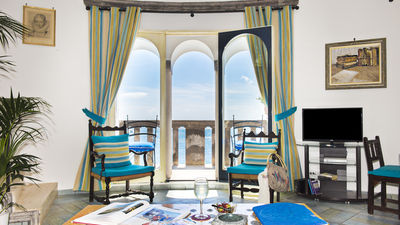 A 16th century watchtower, it stands just 9 meters from the sea, on the cliffs of Positano along the pedestrian street that connects the two main beaches. Welcoming and luxurious, it is the ideal accommodation for a wonderful holiday full of unforgettable charm. Independent castle overlooking the sea, it can accommodate up to 6 people. The spaces are organized into two double suites and a double bedroom with private bathroom. On the ground floor a large hall welcomes guests in the magic of a circular space that traces the perimeter of the tower. The balcony with mullioned windows, overlooking the sea, brings the horizon closer for those who look out. Furnished with antique furniture, piano, sofa, dining table, desk, armchairs, smart TV, wifi. The kitchen, complete with crockery and linen, is equipped with a fridge, microwave, toaster, kettle, blender, blender, dishwasher and washing machine. On the same floor there is a private double bedroom with private bathroom. On the mezzanine floor, comfortable and welcoming, there is a wonderful double bedroom with private bathroom. From here a romantic window overlooks the coast and the sea. A wrought iron staircase allows access to the large circular terrace overlooking the sea of Positano. Paved with overseas blue Vietri tiles that portray the compass rose, the terrace is furnished with comfortable deckchairs, a wrought iron table and chairs, typical of the area, and a comfortable shelter that captures the shade during the hottest hours. The circular terrace is ideal for the celebration of intimate and extremely romantic symbolic weddings. On the lower floor, a romantic double suite almost immersed in the sea opens up to the guest's view, with a private bathroom, equipped kitchenette and terrace, for magical moments of intimacy. In the house there are a hairdryer, washing machine, clothesline, iron and ironing board.