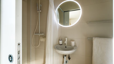 The swimming pool is located approximately 3m from the villa, on the same level as the ground floor. Rectangular in shape; measures 10 x 4 m with a constant depth of 1.30 m; lined with PVC; access via steps; saltwater purification system; internal and external lighting; cold-water shower. The surrounding sun deck measures approximately 100 sqm and is equipped with sun loungers and umbrellas. Open from the first Saturday in April to the last Saturday in October.