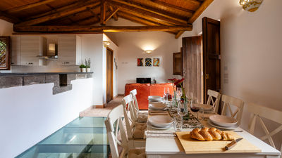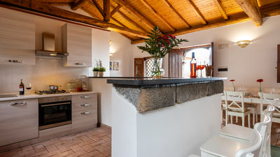 Vigne dell'Etna is an old renovated winery, nestled in the heart of the Etna area, renowned for the production of excellent wines. The property is surrounded by over 1,000 sqm of vineyards, with a breathtaking view of the sea, also seen from the lava stone swimming pool, designed to blend harmoniously with the surroundings. The glass railing allows the view to be enjoyed unobstructed. The outdoor spaces, ideal for relaxing moments or for dining under the shade of the pergola, are connected to the swimming pool by a few steps. Indoors, the villa retains elements of the past, such as the wooden beams, the Sicilian terracotta and the lava stone steps, a tribute to the old grape-pressing areas. The open-plan living area is cosy and intimate, with a counter in front of the kitchen and sitting and dining areas offering space for every need. Vigne dell’Etna is perfect for exploring Sicilian culture and admiring the spectacular views of Mount Etna and the Ionian Sea. From here, you can visit the mountain with its natural landscapes and characteristic villages, such as Sant'Alfio, just 2 km away. Half an hour away by car is the sea of fascinating Taormina, an ideal destination for a touch of worldliness. Please note: the owners live in a separate part of the property with independent entrance and grounds.