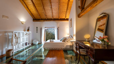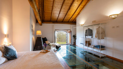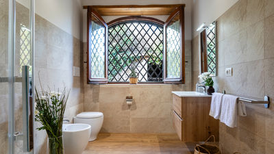 Please notice that photos are taken in spring, therefore flower blossoming, and the colours of the gardens' grass could be different at the moment of your arrival at the villa.
