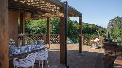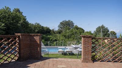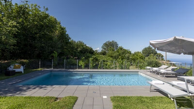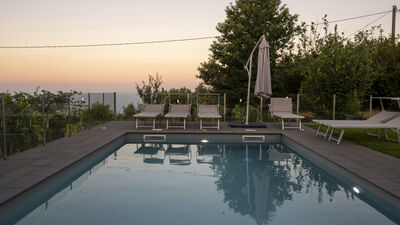 An area of over 1000 sqm, cultivated with vineyards, surrounds the structure. The garden of about 300 sqm is planted with lawn, while the remaining land is typical woodland of the area. The swimming pool, surrounded by a lava stone terrace and lawn, has sunbeds and a small outdoor seating area. The pergola, at the exit of the living area, is equipped for outdoor dining. The property is accessible via a driveway gate.