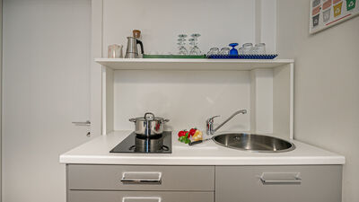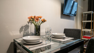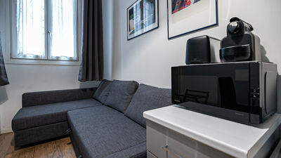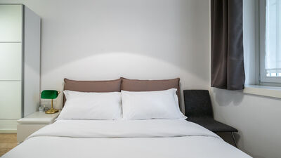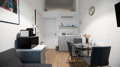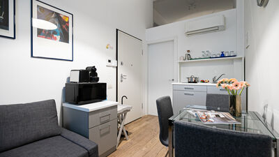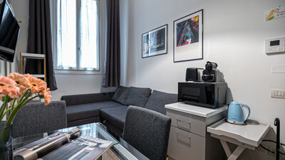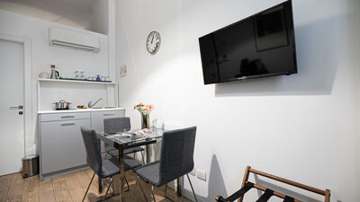 The apartment can accommodate two people, making it perfect for couples, a small family group or single guests. Among the services available are fast wifi, air conditioning and smart door for independent access. There is no washing machine inside the apartment, but in front of the house, at number 18, a dry cleaner is available, a convenient solution for longer stays.