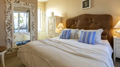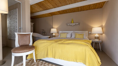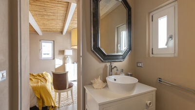 The complex, which covers a total area of about 200 square meters, includes the main house and three annexes, arranged on one level and connected by paths inside the garden. The main house, located closer to the sea, houses the common areas of the villa. MAIN HOUSE (about 90 square meters) - Entrance to the living room with sofa and TV; service bathroom; double bedroom with en suite bathroom with shower, direct access to the outside and private terrace overlooking the sea; kitchen and dining room with large opening window that overlooks the terraces with pergola overlooking the sea. ANNEX 1 (about 70 square meters) - Two mirrored double bedrooms, each with private entrance, en suite bathroom with shower partially integrated into the room and shaded private terrace with sea view. ANNEX 2 (about 30 square meters) - A double bedroom with en suite bathroom with shower, bathtub in room, private terrace with sea view and outdoor shower (with hot water). ANNEX 3 (about 40 sqm) - A double bedroom with en suite bathroom with shower and private terrace overlooking the sea.