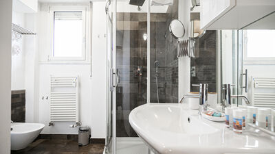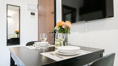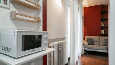 The Zuretti 57 apartment is located on the sixth floor of a Milanese residential building and covers an area of 37 square meters, with well-organized and functional environments. The elevated position guarantees brightness and a pleasant opening to the city, making the accommodation ideal as a practical and comfortable urban retreat.