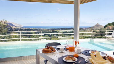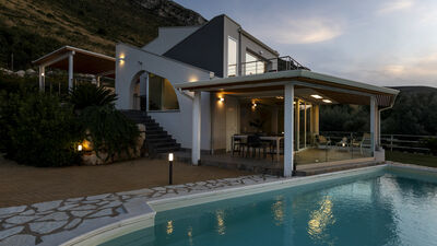 Immersed in the suggestive promontory of Scopello, Villa dei Sospiri embodies the perfect balance between contemporary design, comfort and connection with nature. The property, developed on two levels, offers a welcoming living area characterized by large panoramic windows. Outside, a well-kept park with swimming pool and various equipped areas offers moments of pure relaxation. The villa dominates the crystal clear waters of the Tyrrhenian Sea and enjoys a strategic position that allows you to reach renowned cultural destinations such as Castellammare del Golfo, Scopello and the Zingaro Nature Reserve in a few minutes.