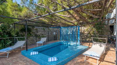 The rectangular pool, located on the panoramic terrace, measures 3.50 x 1.70 m with a depth of 50 cm (suitable and safe for children). Lined in mosaic tiles, it is open from the last Saturday in April to the first Saturday in October.