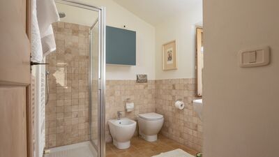 The house has an area of about 200 square meters and is spread over two floors, communicating both internally and externally. GROUND FLOOR โ Kitchen with dining area and access to the porch with dining table; living room; a bathroom with shower; laundry room. FIRST FLOOR โ Living room with TV, two double bedrooms (150 cm wide beds), one with en suite bathroom with bathtub and the other with en suite bathroom with shower; two double bedrooms; a bathroom with bathtub.