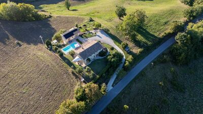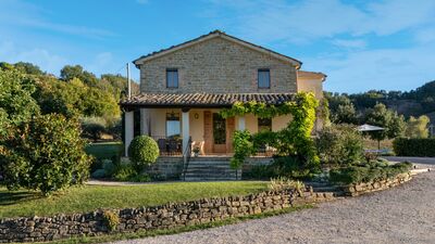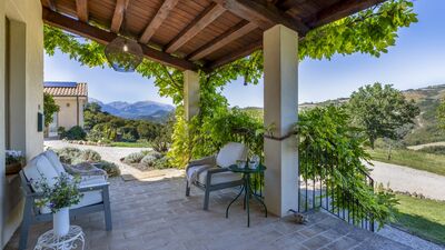 Casale La Cascina is an ancient and cozy renovated stone house, located on a hill with an open view of the green Marche countryside and with an extraordinary view of the Sibillini Mountains. The house is spread over two floors and includes four bedrooms, a bright living area and a kitchen with dining area, connected to a furnished porch for outdoor dining. The well-kept garden surrounding the property is home to olive trees, hedges and tall trees. To complete this suggestive scenario, a salt-purified pool invites you to relax while admiring a view as far as the eye can see: a perfect setting for regenerating body and spirit, immersed in the rhythms of nature. The strategic location offers easy access to the cultural and natural attractions of the Marche region. Note. Inside the property there is a private annex that remains unoccupied during the stay of the guests.