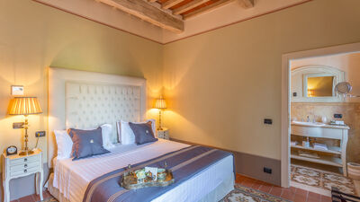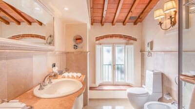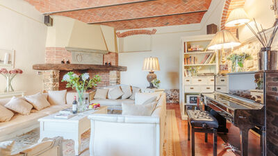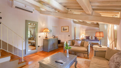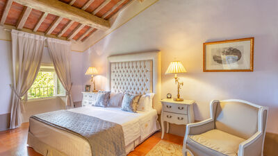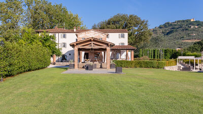 Villa Pitti Amerighi is a refined home nestled in the heart of the enchanting Tuscan countryside, where the charm of history blends harmoniously with the elegance of modern design. Its ancient origins date back to the times of the Medici family. Located in Pieve a Nievole, a short distance from Montecatini Terme, the property includes the main house and an annex. The spacious and bright interiors are distinguished by soft tones, wood-beamed ceilings and exposed stone walls, enhanced by large windows that open onto the well-kept surrounding garden. To complete this suggestive scenario, several corners dedicated to relaxation and a beautiful pool invite you to enjoy the peace and to admire a view that is lost on the horizon. Located between the timeless cities of Lucca and Florence, the villa is the ideal choice for families and groups who want to explore medieval villages and immerse themselves in the cultural wealth of Tuscany. Note: the villa adjoins the owners' house available for any guest needs, while fully respecting the privacy and exclusive spaces of the latter. Any extra services requested by guests will be provided exclusively by the owners.