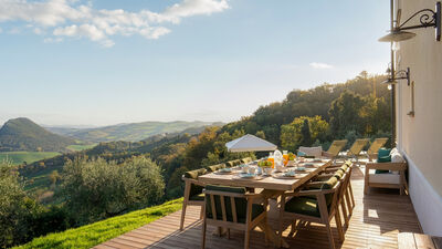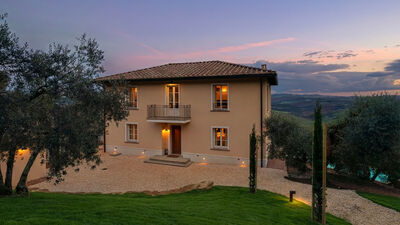 Immersed in the quiet of the Tuscan hills, a short distance from the medieval village of Volterra, Villa Francesca is the ideal destination for those looking for an authentic charming experience in the countryside. The villa, recently built and inserted in a centuries-old olive grove, welcomes guests with natural elegance. The interiors, warm and welcoming, open onto a large living area with living room and dining room overlooking a terrace overlooking the valley, perfect for enjoying the silences, light and views that are lost among olive trees, cultivated fields and woods. The rooms, with attention to detail, offer relaxing views of the valley. The olive grove, the manicured lawns and the pool area, also terraced, complete the typical wellness experience of the Tuscan countryside. A short distance from the region's main attractions and the Etruscan Coast, Villa Francesca offers hospitality where comfort, authenticity and landscape meet in perfect balance. It should be noted that the owners live in an adjoining villa, but the property reserved for guests is completely separate and designed to ensure maximum privacy.
