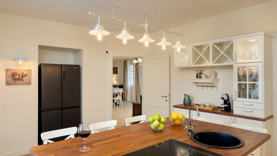 The villa is spread over two levels connected by an internal staircase for a total area of about 200 square meters. GROUND FLOOR - Main entrance on open space on two levels consisting of dining room and living room with fireplace (ornamental), TV and access to the terrace through a French window; kitchen with access to the terrace; double bedroom; bathroom with shower; laundry. FIRST FLOOR - Four double bedrooms, two with a divisible bed, with an en suite bathroom with shower. Air conditioning in the bedrooms.