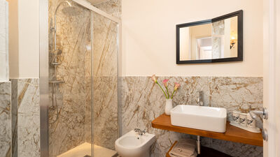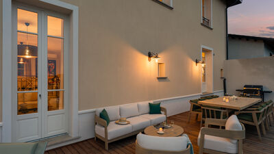 The property, immersed in an olive grove located on the side of the hill, covers about 2,000 square meters and offers large and well-organized outdoor spaces. The parking lot, with parking spaces for four vehicles, is outside, in front of the pedestrian gate, after which you take a short gravel driveway lined with cypress trees that leads to the villa. Around it there is an unfenced area that alternates lawn, gravel surfaces, olive trees and walkways that connect every area of the property. On the opposite side from the main entrance, there is a large panoramic wooden terrace, accessible from both the kitchen and the living room, furnished with a dining table, outdoor sitting area and barbecue. The property includes a swimming pool with its solarium area, located on a terrace that alternates lawn and wooden deck. N.B.: Please note that the photo shoots are usually carried out in spring, so the colors and blooms of the gardens, lawns and parks may be different when you enter the villa.