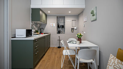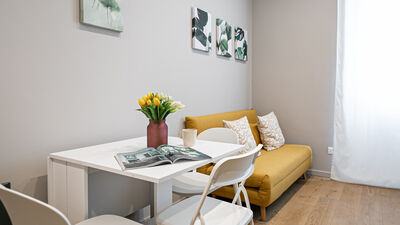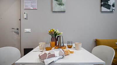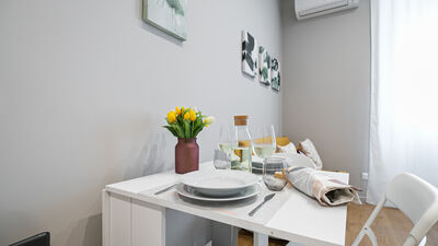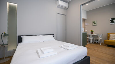 The apartment guarantees a complete stay experience thanks to services designed for the well-being of guests. The Wi-Fi connection allows you to always stay connected for work or leisure, while air conditioning and heating ensure the ideal climate in every season. The washing machine allows you to manage the laundry in total autonomy, particularly useful for medium-term stays. For moments of relaxation, the smart TV offers entertainment after a day spent discovering the city. All these elements combine to create a welcoming environment where you can feel at home. Self-check-in allows independent and secure access.