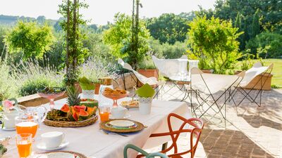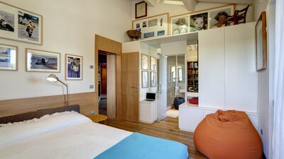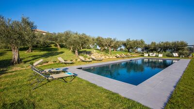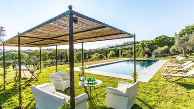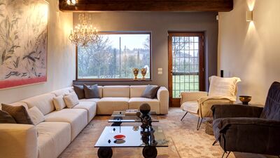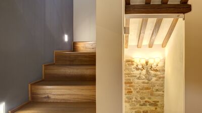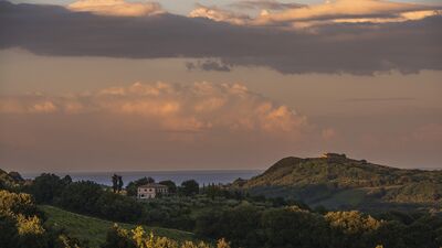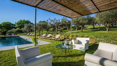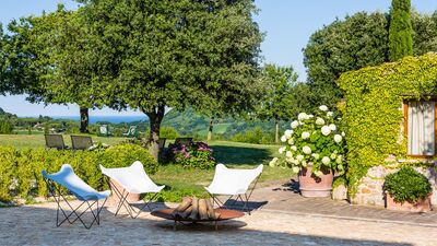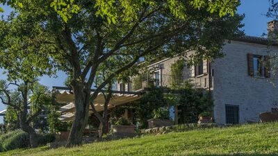 Casa Eugenia is a restored villa with a unique and contemporary style, with panoramic pool and sea view, located on a promontory along the Adriatic coast, near Fiorenzuela di Focara. Designed to provide relaxation and comfort, it features spacious interiors that combine high-quality finishes, a lively style and works of art. The complex consists of the main villa and a separate annex, with four bedrooms and different indoor and outdoor living areas. Surrounded by a large lush garden, the outdoor area offers shaded seating areas, a veranda equipped for outdoor dining and a 16-meter pool with views of the Monte San Bartolo Park. The location is ideal for beach days, country trips and visits to Gradara, Urbino and the Riviera Golf in Cattolica.