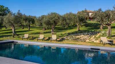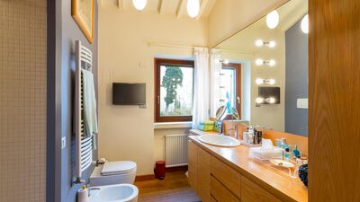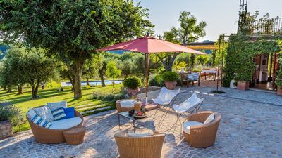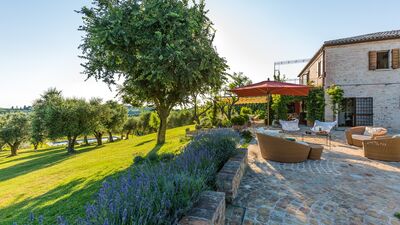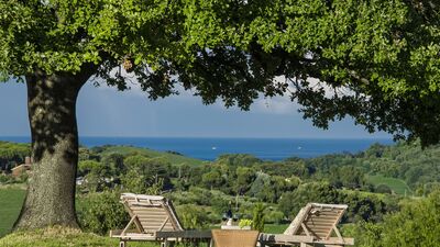 The property covers 10 hectares of fenced land, of which 25,000 square meters constitute the space pertaining to the villa, planted with lawns, centuries-old oaks, olive trees and cypresses. Several relaxation areas are positioned to enjoy the sea view or to offer shaded corners under the trees. A panoramic veranda connected to the villa offers a space dedicated to outdoor dining. The garden surrounds both the main villa and the annex, with the swimming pool and terraces overlooking the Monte San Bartolo Park. N.B.: Please note that the photo shoots are usually carried out in spring, so the colors and blooms of the gardens, lawns and parks may be different when you enter the villa.