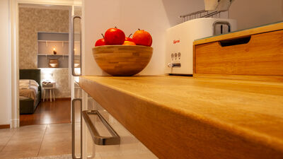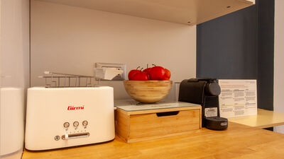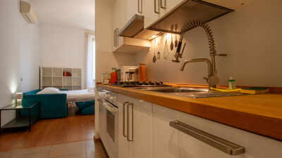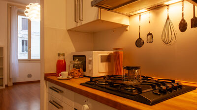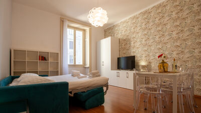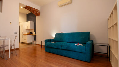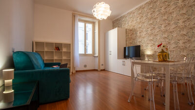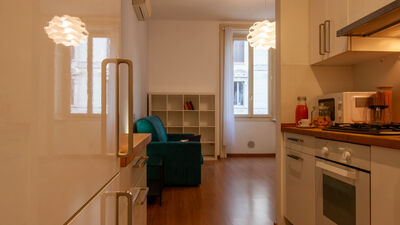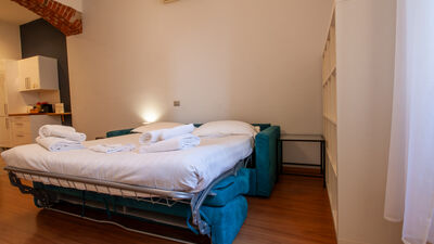 The apartment consists of a spacious bedroom with a comfortable double bed, perfect for resting after a day spent discovering the city or after work commitments. The bright and versatile living area offers a double sofa bed that can accommodate two other guests, making the apartment ideal for families or small groups of up to 4 people. The kitchen is fully equipped with a microwave, fridge/freezer and coffee machine, allowing you to prepare your meals in total autonomy. The modern and functional bathroom completes the layout of the interior spaces with everything necessary for your comfort.