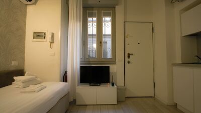 Cielo terra building entirely dedicated to holiday homes (also depending on the possibility of providing accommodation to groups) Located in a strategic area of the city, well connected to the center and the main tourist attractions. The Cadorna station, subway and train, is only 30 meters away, from here the Malpensa Express service is also active. - The structure has a reception with staff available from 09.00 to 19.00, luggage storage is available. Studio apartment on the ground floor, comfortable and bright, in a strategic area of the city, well connected to the center and the main tourist attractions. The kitchenette is complete with accessories, dishes, dishes, refrigerator, kettle, induction stove and microwave. The sleeping area is equipped with 1 comfortable single bed. The Studio is reserved for non-smokers and there are: courtesy line, hairdryer, wifi and air conditioning. Inside THE B VILLAGE there is a small gym and a shared laundry room for guests to use. From the studio you can reach Fiera Milano City subway in just 5 minutes and the Rho Fiera exhibition complex in 10 minutes, without changing vehicles. Piazza Affari is only a 15-minute walk away, and a short 20-minute ride above one of the city's iconic and historic trams will take you to the famous Milan Fashion District. The Studio remains completely at your disposal and every detail has been designed to welcome you in a clean and comfortable environment, whether you are traveling for work or are passing through to visit the city. Take care, you are welcome!
