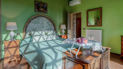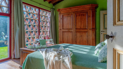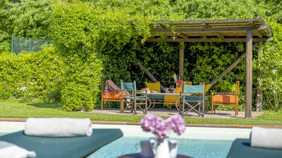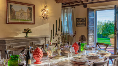 La Mandolata is a renovated Tuscan farmhouse located inside the park of Villa Torrigiani, just 12 km from Lucca and a short drive from the sandy beaches of the Versilia coast. Once used as an agricultural building, the house has been cleverly renovated to preserve traditional architectural features, including exposed stone walls, terracotta floors and the characteristic wooden โmandolateโ wall. Furnished in a traditional style and embellished with works of art, the colorful interiors include four double bedrooms with private bathrooms, a large kitchen, living areas and air conditioning in all bedrooms. Outside, the house opens onto a porch with a dining area and seating area overlooking the garden. Equipped with facilities for sports and relaxation, the villa has a swimming pool, a tennis court with rackets available and a small soccer field. The location is ideal for exploring Lucca, Pisa, Florence, Montecatini Terme and the surrounding historic villas, including the renowned Villa Torrigiani with its English-style gardens.